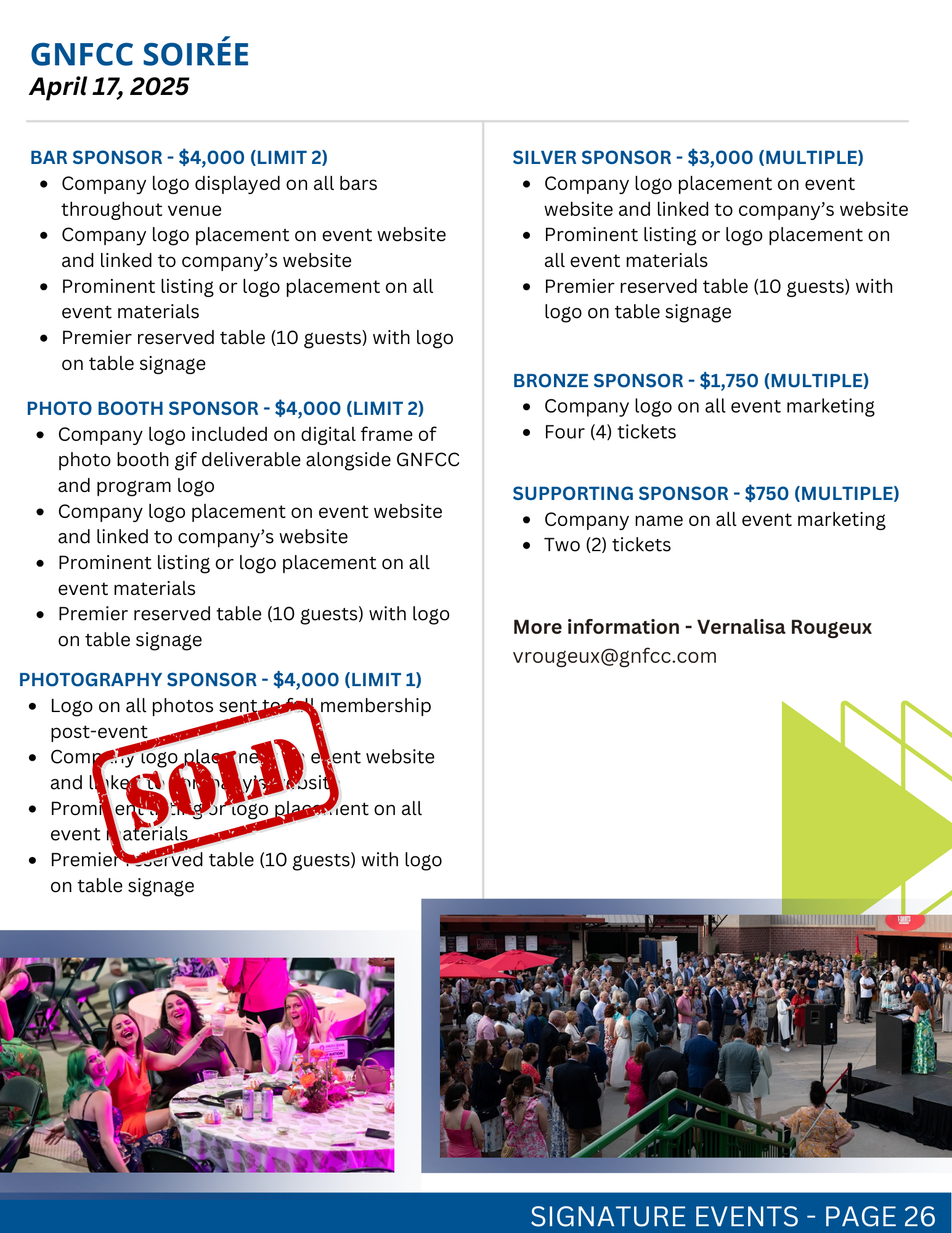 Proceeds from Spring Soiree enable the Chamber to be the recognized leader for business growth, talent development and regional prosperity. For questions, email Vernalisa at vrougeux@gnfcc.com