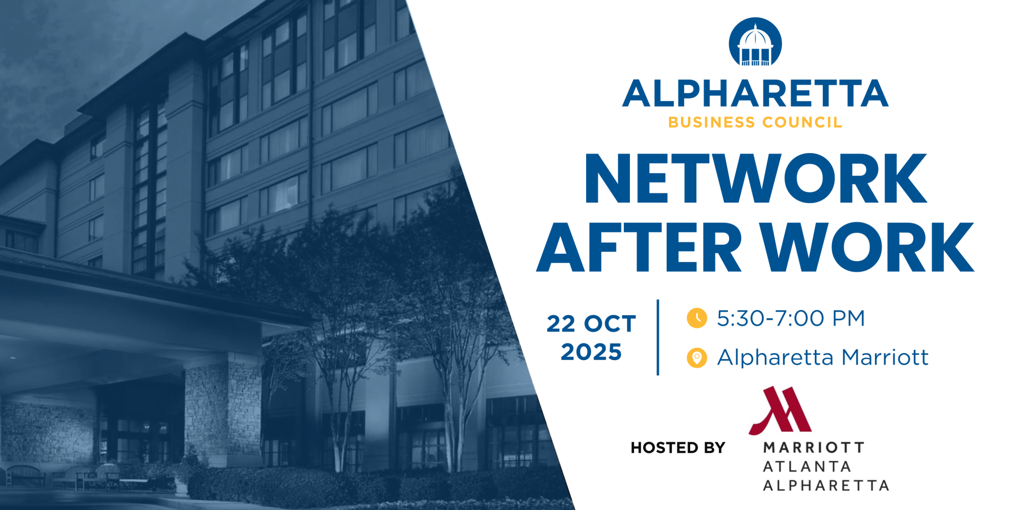 You are invited to the Alpharetta Business Council's first Network After Work event at the Marriott Atlanta Alpharetta on Wednesday, October 22, from 5:30–7:00 p.m.